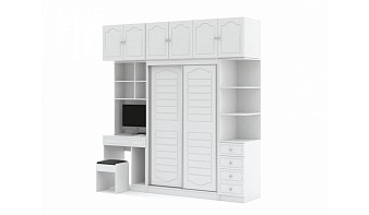Шкаф-купе со столом Октава 3 BMS будет особенно актуален в небольших помещениях, где важна экономия пространства. Многофункциональная модель объединила двухдверный шкаф-купе для одежды, распашную антресоль, компьютерный столик, дополненный книжными полками и банкеткой, а также тумбу с выдвижными ящиками и торцевые радиусные полки. Универсальный белый цвет и изящная фрезеровка делают комнату визуально светлее и просторнее. Купить шкаф-купе со столом Октава 3 BMS по доступной цене вы сможете в нашем интернет-магазине.