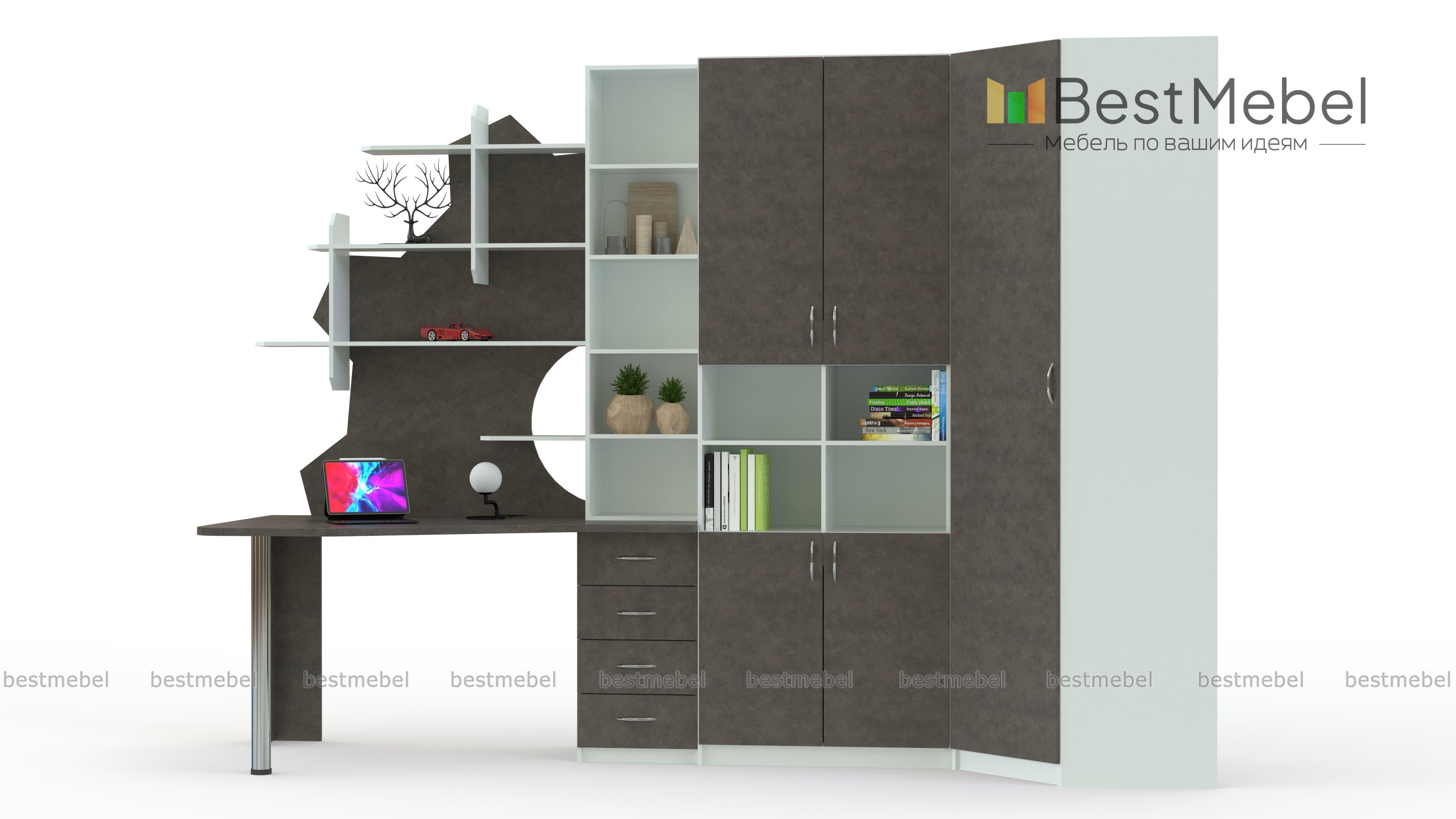 Стенка в детскую с угловым шкафом Графика BMS олицетворяет современный подход к организации пространства. Стильная разноуровневая композиция включает в себя компьютерный стол с тумбой, эффектной ступенчатой надстройкой и стеллажом, комбинированный книжный шкаф и однодверный платяной. Натуральные древесные и пастельные тона корпуса и фасадов выглядят актуально и создают комфортную атмосферу для отдыха и учебы. Купить стенку в детскую с угловым шкафом Графика BMS вы сможете в нашем интернет-магазине, подобрав нужные параметры.