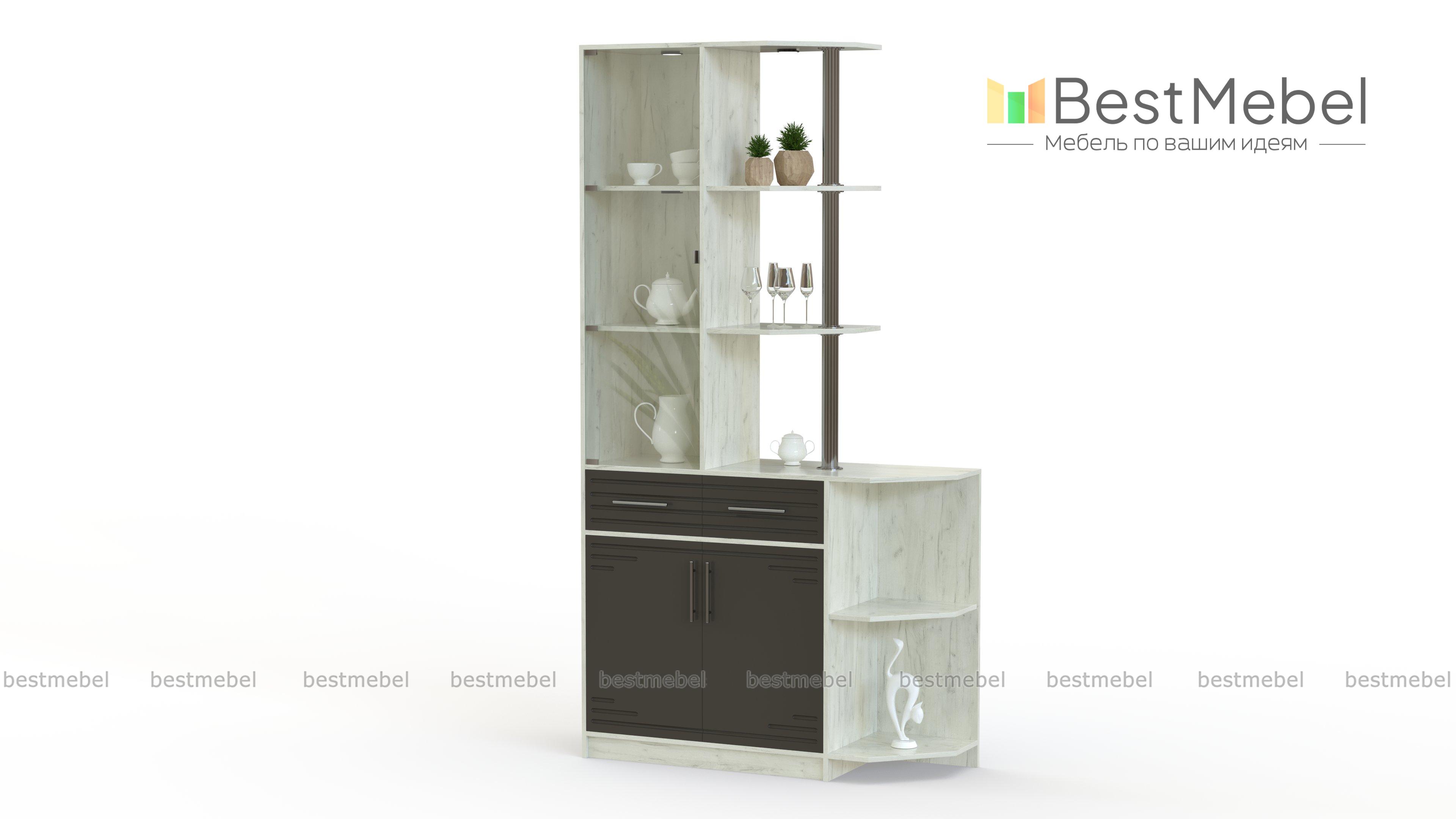 Буфет Брукс 1 BMS может выполнять функцию бара и дополнит интерьер элегантной гостиной или столовой. Компактный и легкий, буфет сочетает в оформлении древесные оттенки, белый, хромированные элементы и стекло. В нижней части модели располагаются распашная тумба, выдвижные ящики для мелочей и угловой открытый модуль, а верхняя представляет собой надстройку с застекленными и открытыми полками на трубной опоре. Эффектный вид предметам в витрине придает встроенная подсветка. Купить буфет Брукс 1 BMS приглашаем в наш интернет-магазин.