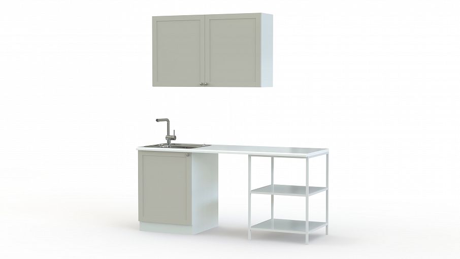 Кухня Энхет Enhet 7 представляет собой готовую комбинацию для малогабаритной квартиры или студии. Шкаф под мойку объединен износостойкой ламинированной столешницей с металлическим стеллажом, оставляя свободное место под бытовую технику, и дополнен распашным шкафом для посуды. Рамочные фасады нейтрального цвета подходят для кухонь с современным и классическим оформлением. Купить кухню Энхет Enhet 7 с выбором цвета по каталогу вы сможете на сайте нашего интернет-магазина. Выбирайте мебель в стиле IKEA (ИКЕА) от производителя BestMebelShop!