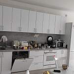 Кухня с модификациями. Цвет фасадов белый шагрень 4101. Фактически он с примесью серого, скорее даже светло-серый, но смотрится красиво. На фото рядом белый холодильник. Кухня очень красивая. Недостатки: 1. Сложно отодрать наклейки заводские с внутренностей ящиков. Так и не отклеили пока, они там намертво. 2. Ящик для столовых приборов у меня открывается почему-то с рывком пока, фурнитуру мы брали хорошую. Кухней пользуемся всего 4 недели, поэтому может не разработан ещё механизм. 3. Когда вынимаю из посудомоечной машины посуду и ставлю в ящик, там на дне бывают мелкие капли. И эти капли оставляют влажный след в ящике, то есть сама поверхность темнеет от влаги. В старой кухне такого не было, ну капля и капля на поверхности, не впитывалась. Аккуратно с влажными предметами. 4. Местами видно ДСП, но за эту цену видимо этого стоило ожидать.