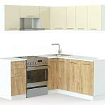 Стильный минималистичный комплект Лидия-2 BMS отлично впишется в интерьер современной кухни, а его угловая конструкция сэкономит место. Три нижних элемента имеют раздельные столешницы, что позволит комбинировать их в соответствии с вашими потребностями. Верхняя часть состоит из шести навесных шкафчиков с распашными дверцами, включая угловой и укороченный для вытяжки. Подходящий цвет фасадов, декорированных ручками-рейлингами, вы сможете подобрать в нашем интернет-магазине.