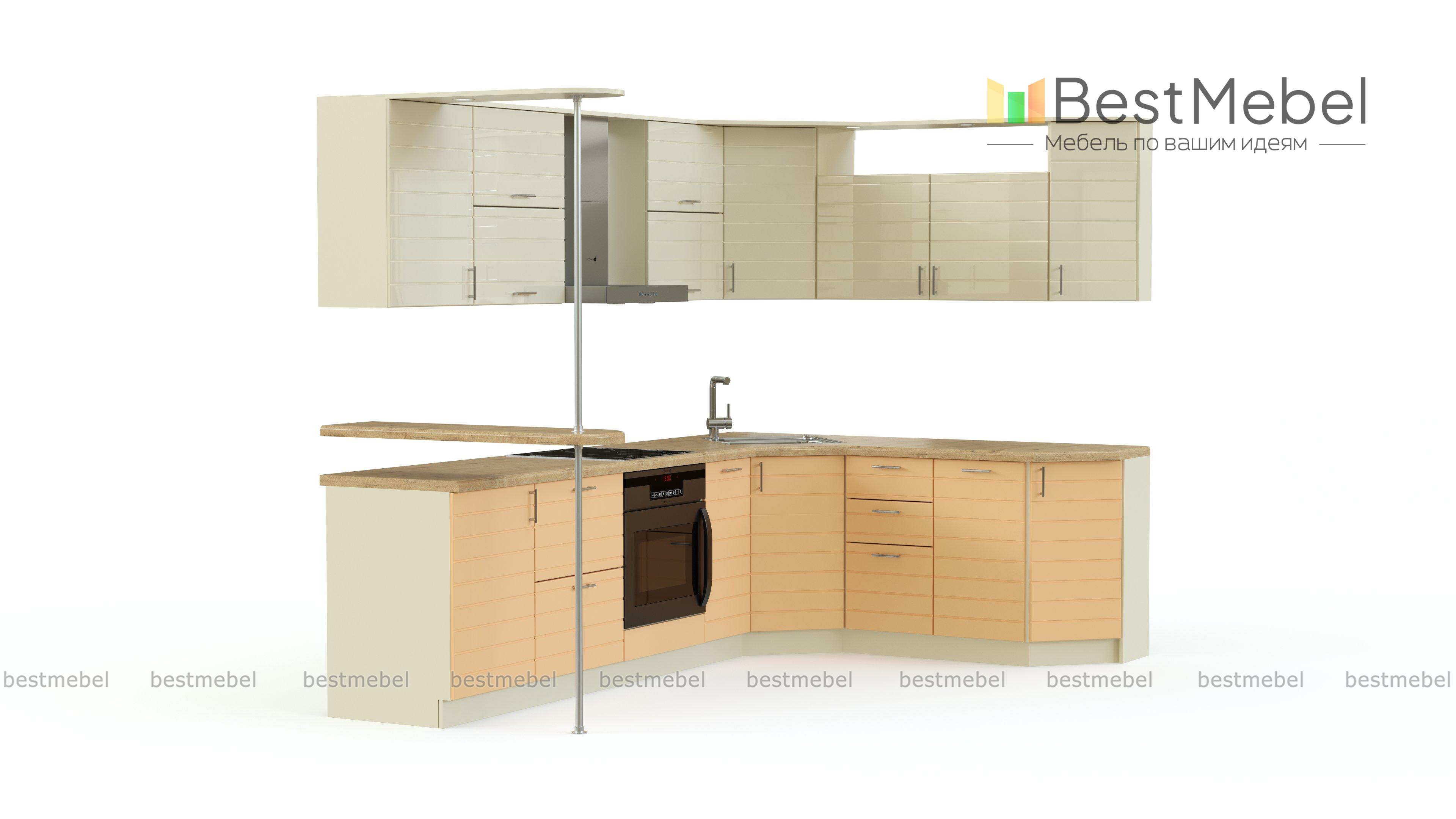 Кухня Пино-3 BMS привлекает нестандартным цветовым решением фасадов – нейтральный бежевый тон верхних шкафчиков и теплый персиковый цвет напольного ряда. Глянцевые поверхности с горизонтальным декором просты в уходе и отличаются износостойкостью. П-образная модель с радиусными торцевыми элементами станет прекрасным решением для современной студии, используя для зонирования помещения барную стойку на хромированных опорах. Купить кухню Пино-3 BMS для комфортного интерьера приглашаем в наш интернет-магазин.