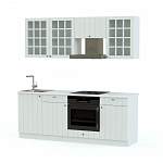Кухня Прованс 3 BMS отличается компактностью, современным дизайном в модном стиле прованс и демократичной ценой. Модель органично впишется в интерьер малогабаритных квартир и студий, добавив помещению визуального объема и легкости. Фасады распашных отделений и выдвижных ящиков украшены вертикальной фрезеровкой и хромированными ручками-кнопками, на дверцах застекленных посудных шкафчиков – декоративные решетки. Кухня оборудована всем самым необходимым для комфортного пользования. Купить кухню Прованс 3 BMS недорого приглашаем к нам в интернет-магазин.