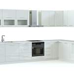 Кухня Стандарт BMS имеет традиционный для современных вариантов лаконичный дизайн и отличается высокой функциональностью и качеством исполнения. Угловая конструкция обеспечивает экономию места, а разнообразные отделения верхних и нижних модулей позволят разместить все необходимые вещи. Гладкие ровные фасады с эргономичными ручками идеально впишутся в минималистичный интерьер. Оживляют строгую композицию навесные посудные шкафчики с матовыми стеклянными дверцами.