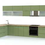 Крупногабаритная модель TITANIUM BMS позволит рационально спланировать пространство кухни большой квартиры или загородного дома. Выполненная в светлых тонах и оснащенная стеклянными дверцами, она не выглядит громоздкой и сделает помещение визуально более легким, а ведение хозяйства – комфортным. Многочисленные модули разместят необходимую бытовую технику и разнообразные мелочи. Дизайн кухни лаконичен, прочные фасады из МДФ декорированы лишь стильной фурнитурой.