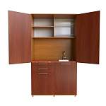 Мини-кухня-шкаф № 5 BMS – простое и функциональное решение для офисов и прочих помещений без стационарной кухни. Практичная модель в закрытом виде представляет собой классический шкаф и органично впишется в интерьер благодаря возможности подбора цветового решения. В нижней части располагаются два распашных отделения, выдвижной ящик и дополнительная столешница, дверцы верхней скрывают открытые полки для продуктов или посуды и сушку. Купить Мини-кухню-шкаф № 5 BMS вы сможете по доступной цене в нашем интернет-магазине.