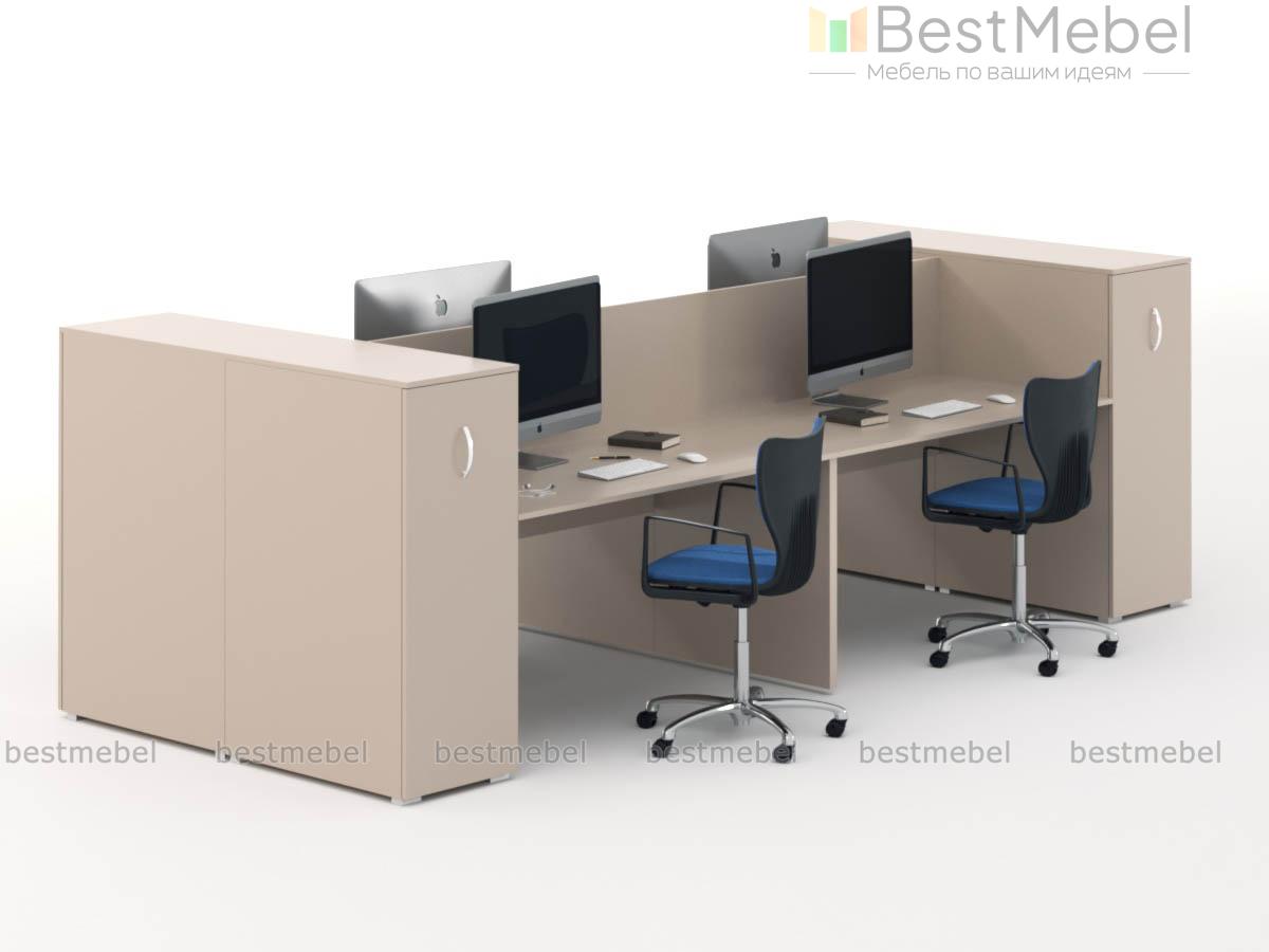 Бенч-система Элен BMS отличается крупными габаритами и будет гармонично смотреться в просторных современных офисах открытого типа. Выполненная в нейтральной бежевой гамме, оптимальной для создания комфортной рабочей атмосферы, композиция включает в себя прямоугольные столешницы, разделенные перегородкой, и торцевые тумбы с выдвижными секциями для документов. Купить бенч-систему Элен BMS и оборудовать рабочие места сразу для четырех сотрудников вам поможет наш интернет-магазин.