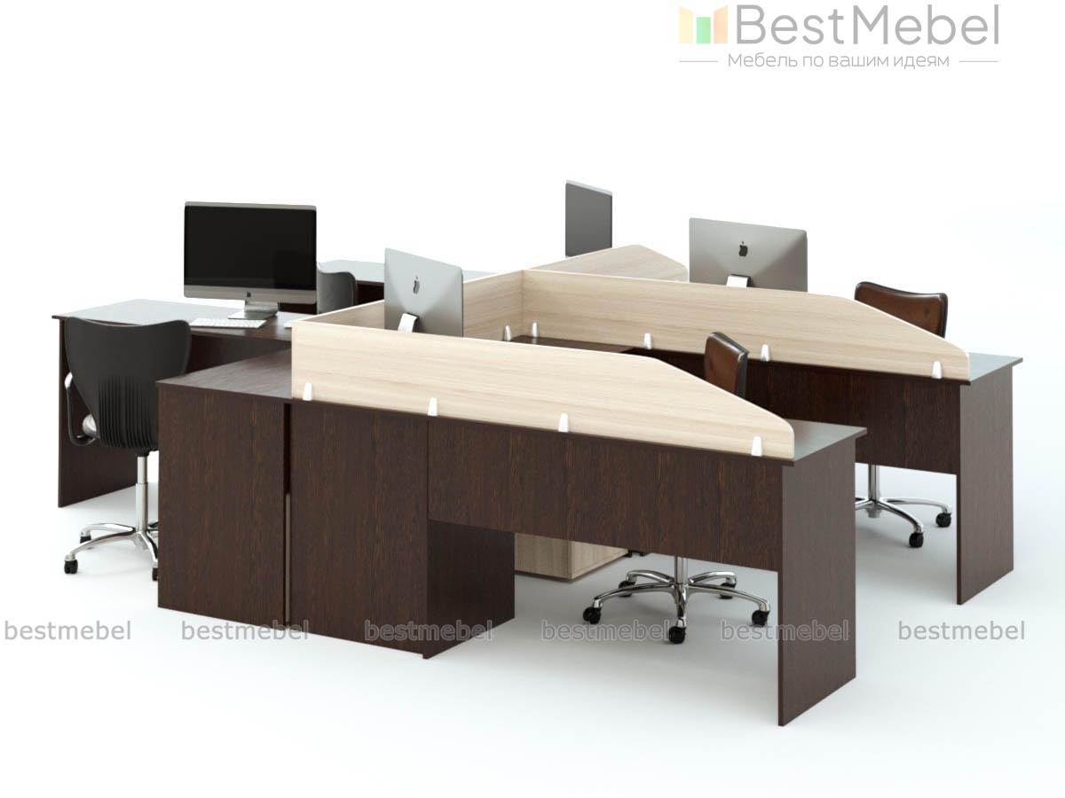 Бенч-система Тим 20 BMS – стильное и функциональное решение для современного офиса открытого типа. Практичная конструкция экономична, выгодно использует пространство и создает все условия для продуктивной работы. Система включает в себя четыре угловых стола с просторными прямоугольными столешницами, разделенными перегородками, и выкатные тумбы с ящиками для канцелярских мелочей. Выполненная в контрастных древесных тонах, композиция сделает атмосферу в помещении комфортной. Купить бенч-систему Тим 20 BMS приглашаем в наш интернет-магазин.