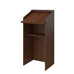 Кафедра ТР24 BMS отличается нарочитой простотой, но при этом оборудована всем необходимым докладчику для комфортного выступления. Современная модель в актуальном оттенке под древесный массив оборудована просторной, расположенной под углом столешницей с защитным бортиком по краю, полочкой, удобной, чтобы разместить воду, а также широкими устойчивыми боковинами и нишей. Купить кафедру ТР24 BMS, стильную и надежную в эксплуатации, вы сможете в нашем интернет-магазине.