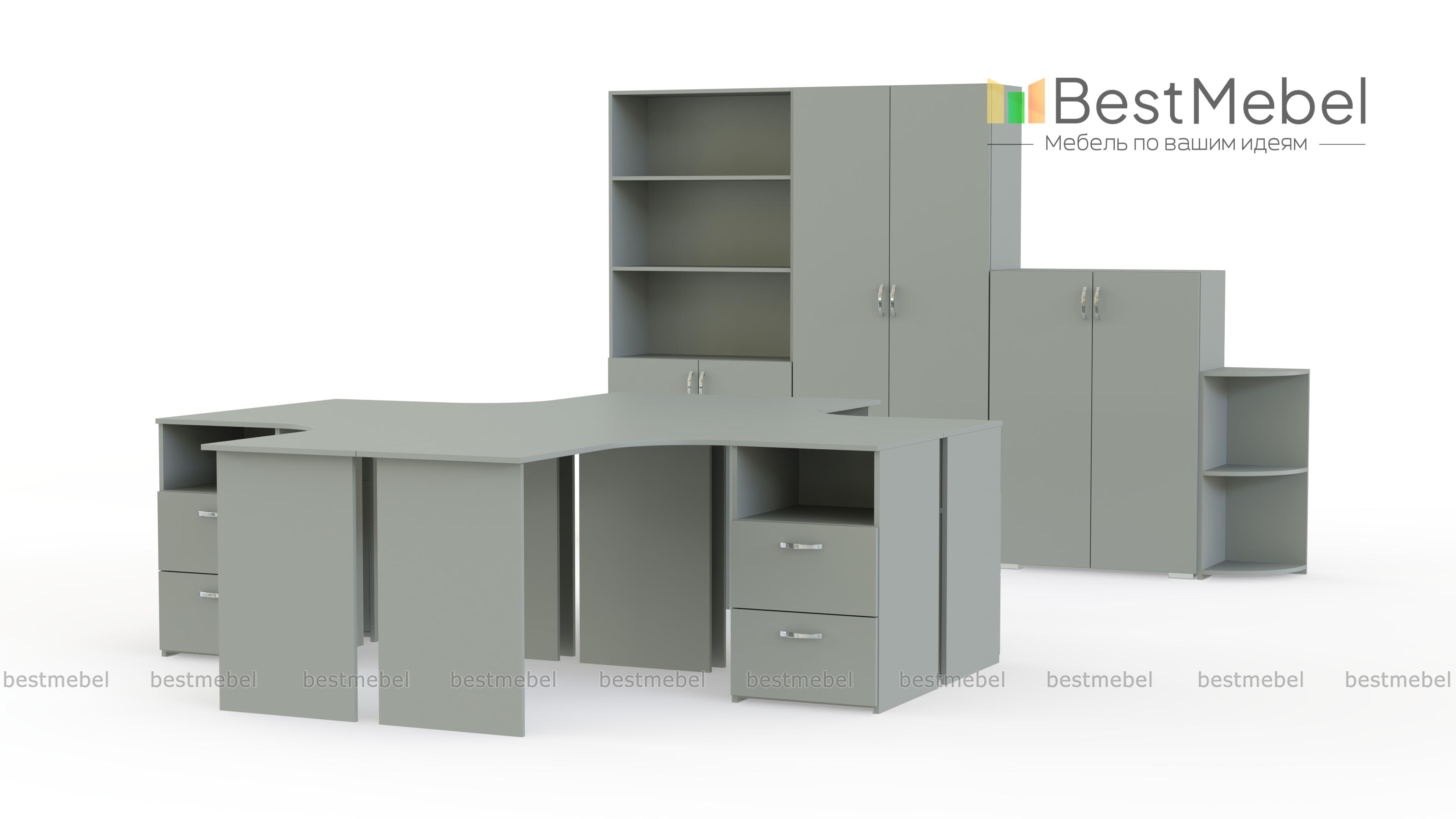 Офисный комплект Эконом BMS – не только простое и стильное, но и экономически выгодное решение для современного офиса. Лаконичный комплект включает в себя четыре угловых письменных стола с приставными тумбами, высокий и низкий двухдверные шкафы, комбинированный шкаф с открытыми полками и угловой стеллаж. Нейтральные тона под массив дерева легко вписать в любой интерьер. Купить офисный комплект Эконом BMS, подобрав необходимые параметры, вы сможете недорого в нашем интернет-магазин.