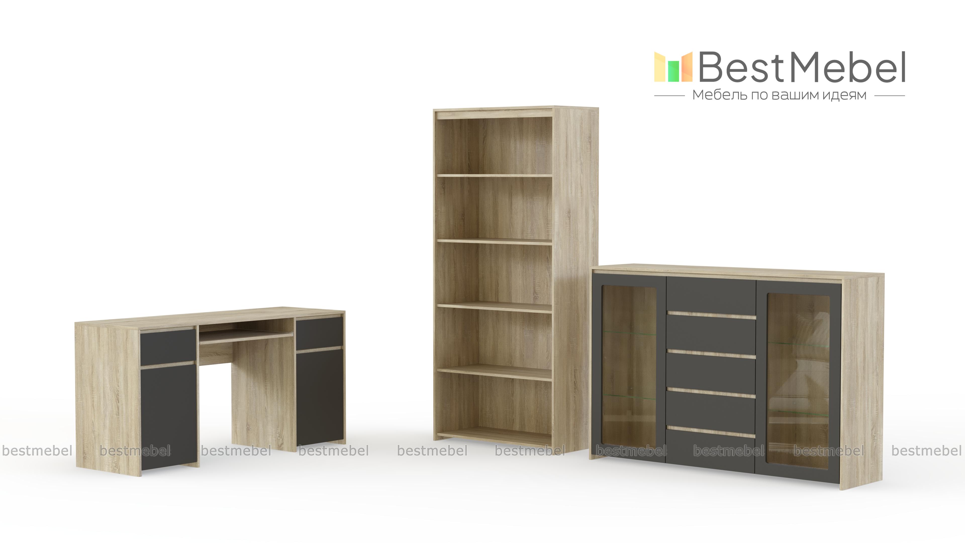 Стильный кабинет Каспиан для тех, кто любит лаконичный дизайн, простые линии и практичность. В комплект входит письменный стол, стеллаж и комод. Мебель имеет потайные ручки, и LED подсветку.