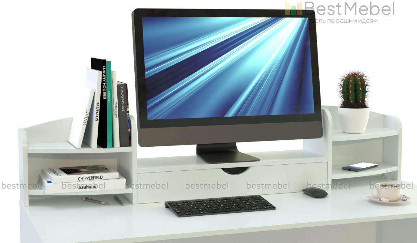 Подставка под монитор Марта-5 BMS – это еще и удобная система хранения для мелочей. Широкая настольная модель оборудована вместительным выдвижным ящиком и боковыми радиусными полочками для учебной литературы, декоративных предметов и письменных принадлежностей. Приподняв экран на комфортную для глаз высоту, вы сможете держать спину в правильном положении и сохранить хорошую осанку. Купить подставку под монитор Марта-5 BMS приглашаем на сайт нашего интернет-магазина, подобрав цветовое решение.