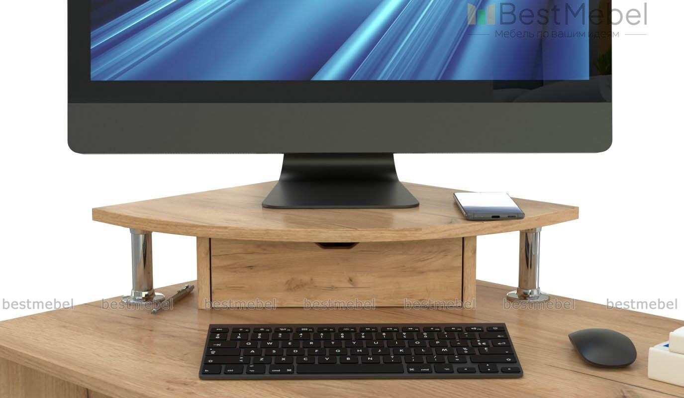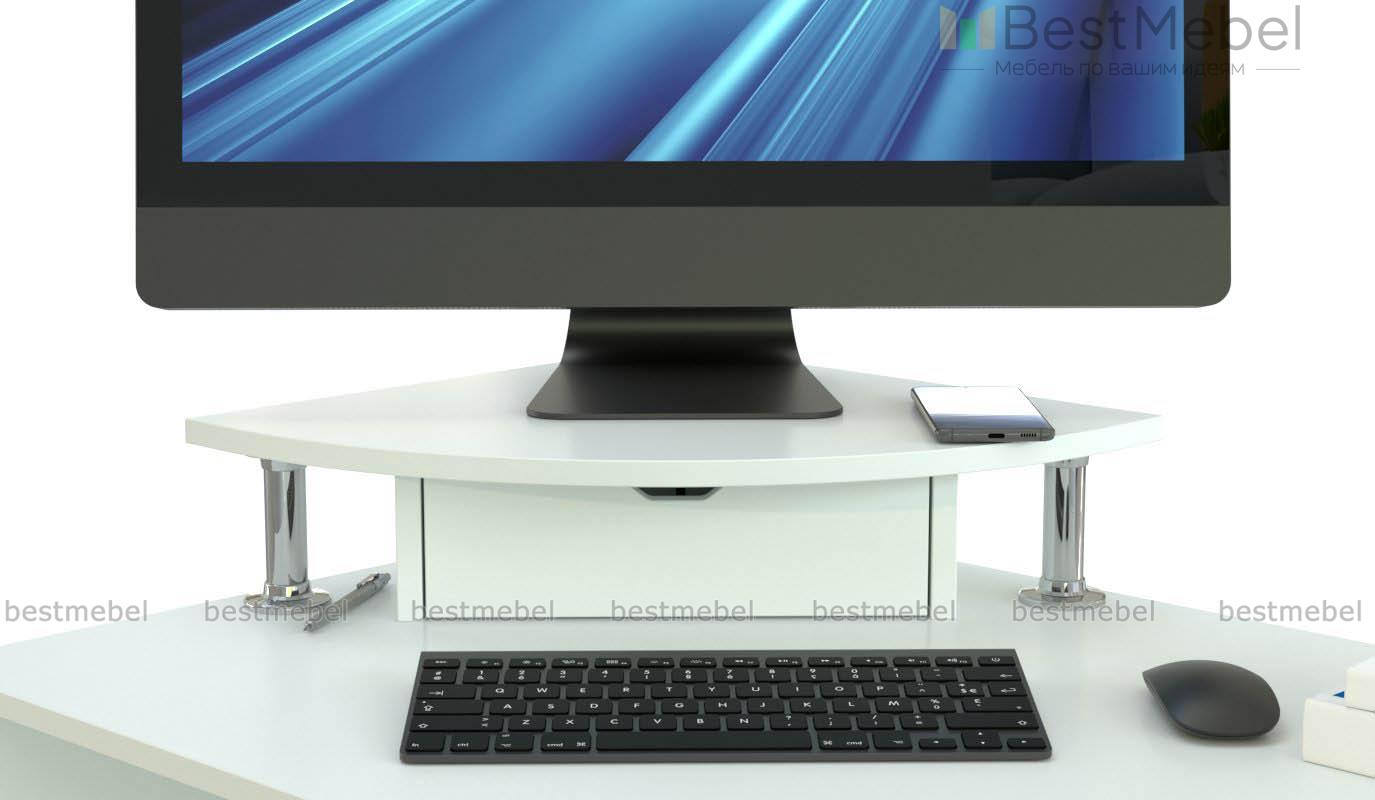 Подставка под монитор Нуга-8 BMS имеет угловую конструкцию и выполняется из ЛДСП в тон корпусу стола. Практичное дополнение поможет вам расположить дисплей на удобной для глаз высоте, а также оптимизировать хранение мелочей. Подставка на устойчивых хромированных опорах безопасно скруглена по краю и оборудована вместительным выдвижным ящичком с ручкой-вырезом. Купить подставку под монитор Нуга-8 BMS по доступной цене приглашаем к нам в интернет-магазин.