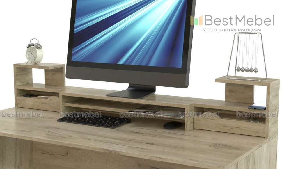 Подставка под монитор Прима-4 BMS – это надстройка для рабочего стола, занимающая всю его ширину. Практичное решение позволит вам снизить нагрузку на глаза и спину, а также эффективно использовать пространство. Модель оборудована просторной столешницей, дополненной боковыми полочками, двумя выдвижными ящиками и нишами, которые помогут разместить канцелярские принадлежности, бумаги, периферийные устройства и декоративные мелочи. Купить подставку под монитор Прима-4 BMS вы сможете в нашем интернет-магазине, подобрав цвет по каталогу.