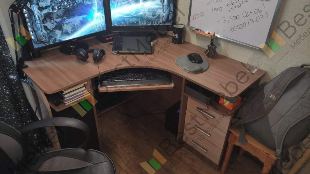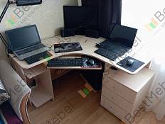 Привет. Стол нормальный. + Сам выбираешь цвет, размеры, фурнитуру;- Пришлось просверливать отверстия под выдвижные ящики. Небольшой брак от фабрики. Если брать столешницу по максимум 1600мм, то есть прогиб от монитора, возможно, потребуется некоторая доработка. Плохо, что нет возможности выбора толщины столешницы. Нет отверстий под провода в стенке ниши системного блока.Резюме: Хорошая, добротная вещь. Для рабочей зоны с 2-мя мониторами (см. фото), однозначно выбирайте столешницу 1600х700мм.