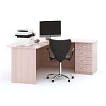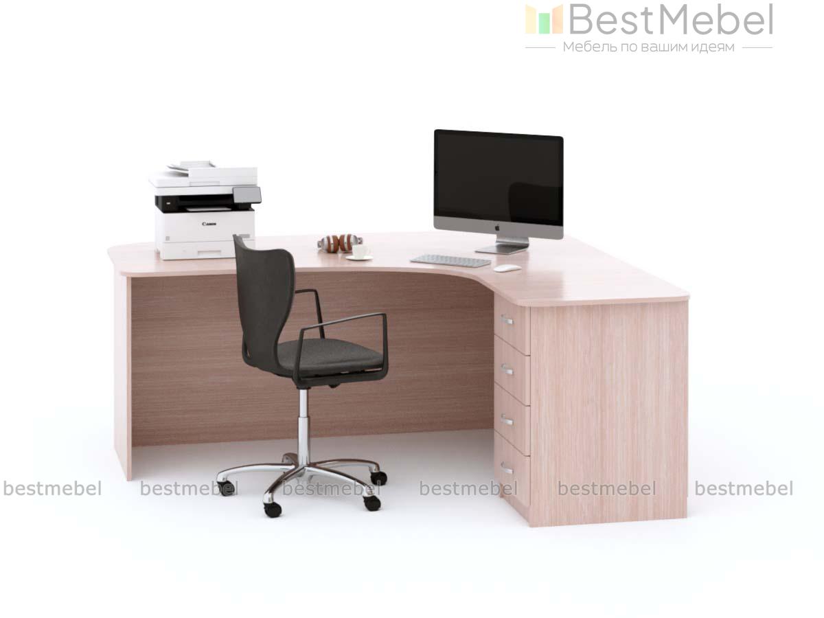 Стол офисный угловой Лори BMS оборудован тумбой с четырьмя ящиками и просторной столешницей, на которой можно разместить монитор с клавиатурой, принтер и лотки для бумаг. Изготовленная из стойкой к механическим повреждениям ламинированной плиты, столешница плавно вырезана и скруглена для безопасного пользования. Г-образная конструкция стола обеспечивает больше свободного места в помещении. Купить стол офисный угловой Лори BMS с выбором цвета и фурнитуры вы сможете на сайте нашего интернет-магазина.
