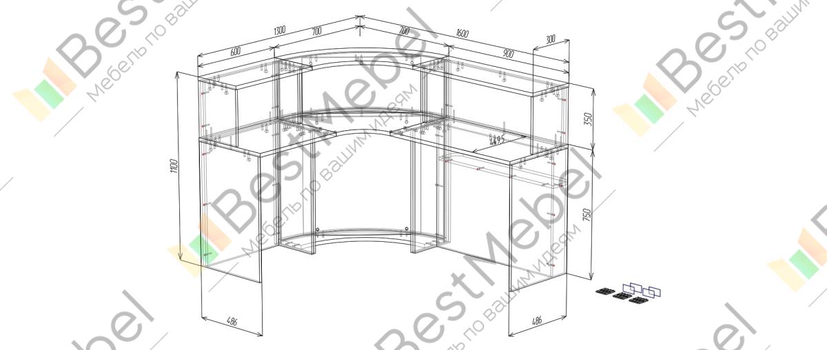 Стойка ресепшн Арни 1 BMS подходит для меблировки офисов и салонов и выглядит солидно в насыщенных оттенках с имитацией текстуры дерева. Угловая радиусная модель удобна для зонирования приемной, позволяя обустроить полноценное рабочее место для администратора и с комфортом обслуживать посетителей. Помимо внешней столешницы на фасаде имеется открытая полочка для сумок и аксессуаров. Купить стойку ресепшн Арни 1 BMS приглашаем в наш интернет-магазин с учетом оптимальных параметров.