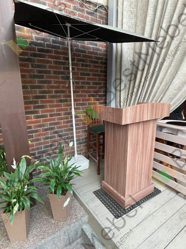 Хорошая, качественная трибуна для выступлений. Мы ресторан и приобрели ее для администратора летней веранды. Не смотря а то что стоит на улице, материал (ЛДСП) очень хорошо переносит влагу. Удобная и компактная особенно для тех у кого ограниченно место. Достаточно вместительна, имеет ящик. Легка в уходе. Советую