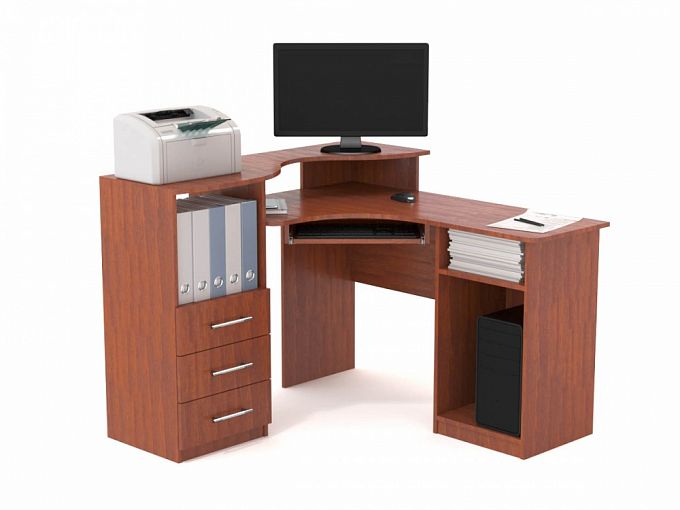 Угловой стол Атрикс BMS – оригинальная двухуровневая модель, на верхней столешнице которой размещается монитор, принтер, другая оргтехника. На нижней поверхности можно работать с документами и деловыми бумагами, положить канцелярские принадлежности, сотовый телефон, другие вещи. В составе изделия ниша под системный блок, выкатывающаяся панель для клавиатуры, тумба с выдвижными ящиками, легко скользящими по роликовым направляющим. Все элементы выполнены из качественных материалов и проверенных комплектующих. Купить стол можно у нас по самой выгодной стоимости. Предлагаем вам самим подобрать цвет и габариты онлайн.