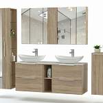 Комплект для ванной Коломбо 4 BMS предназначен для меблировки просторных помещений и гармонично сочетает минималистичные формы с теплыми древесными оттенками. Подвесная композиция включает в себя все для удобного хранения гигиенических принадлежностей и комфортного ухода за собой сразу двух человек. В комплекте широкая тумба под две раковины-чаши, разделенная нишами, зеркальные шкафы с подсветкой, тумба под бельевую корзину и пенал с зеркалом на фасаде и торцевыми полочками для мелочей. Купить комплект для ванной Коломбо 4 BMS приглашаем в наш интернет-магазин.
