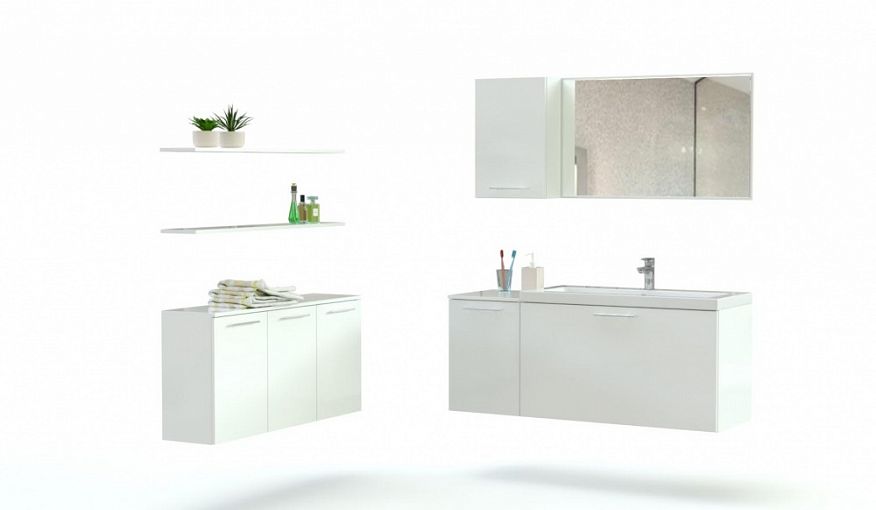 Комплект для ванной комнаты Устина 5 BMS, выполненный в нейтральном белом глянце, не оставит равнодушными ценителей минимализма. В составе подвесной композиции широкая тумба под раковину, тумба с тремя отделениями для хранения гигиенических принадлежностей, зеркало, шкафчик с глухим фасадом и открытые полки для мелочей. Устойчивые к действию влаги и повышенным температурам поверхности надолго сохранят эстетичный вид. Купить комплект для ванной комнаты Устина 5 BMS приглашаем в наш интернет-магазин, подобрав цвет по каталогу.