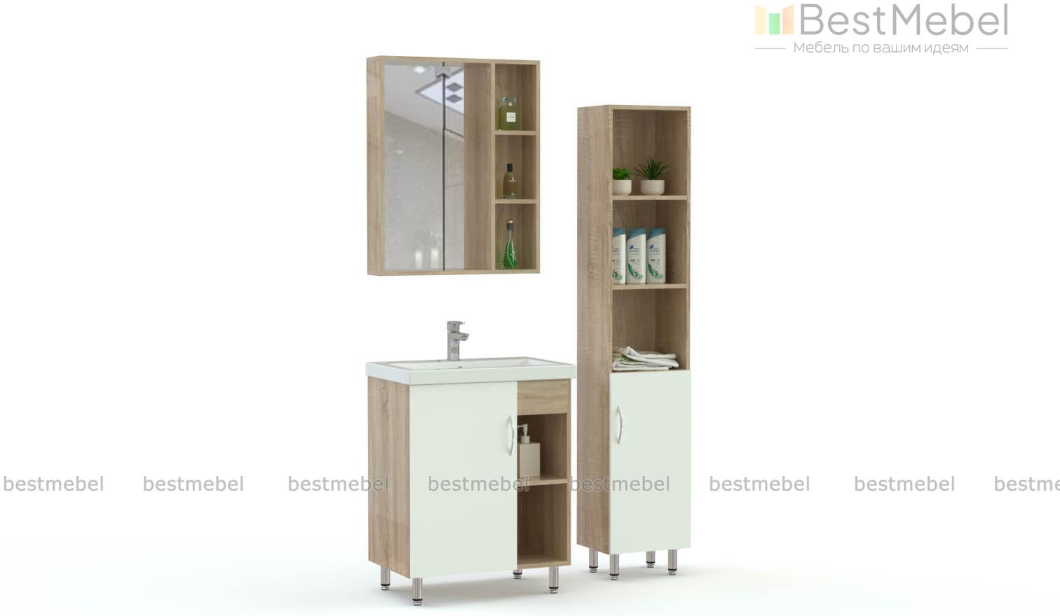 Комплект для ванной Жанна 4 BMS выполнен в черно-белом глянце и эффектно смотрится в современных интерьерах. В комплект входят напольная тумба под раковину, навесной зеркальный шкаф и пенал. Все предметы имеют комбинированную конструкцию и позволяют как скрыть разнообразные хозяйственные мелочи за глухими фасадами, так и разместить необходимое в быстром доступе на открытых полках. Купить комплект для ванной Жанна 4 BMS и создать по-настоящему комфортный интерьер вам поможет наш интернет-магазин.