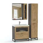 Мебель для ванной Биттер 2 BMS поможет оборудовать комнату в едином стиле. Популярная лофтовая композиция включает в себя напольную тумбу под раковину с двумя выдвижными ящиками, зеркало с подсветкой, открытой полкой и шкафчиком для хранения мелочей и высокий комбинированный пенал. В оформлении предметов сочетаются поверхности нейтрального белого и холодного голубого оттенков с контрастным металлическим профилем. Купить мебель для ванной Биттер 2 BMS приглашаем в наш интернет-магазин.