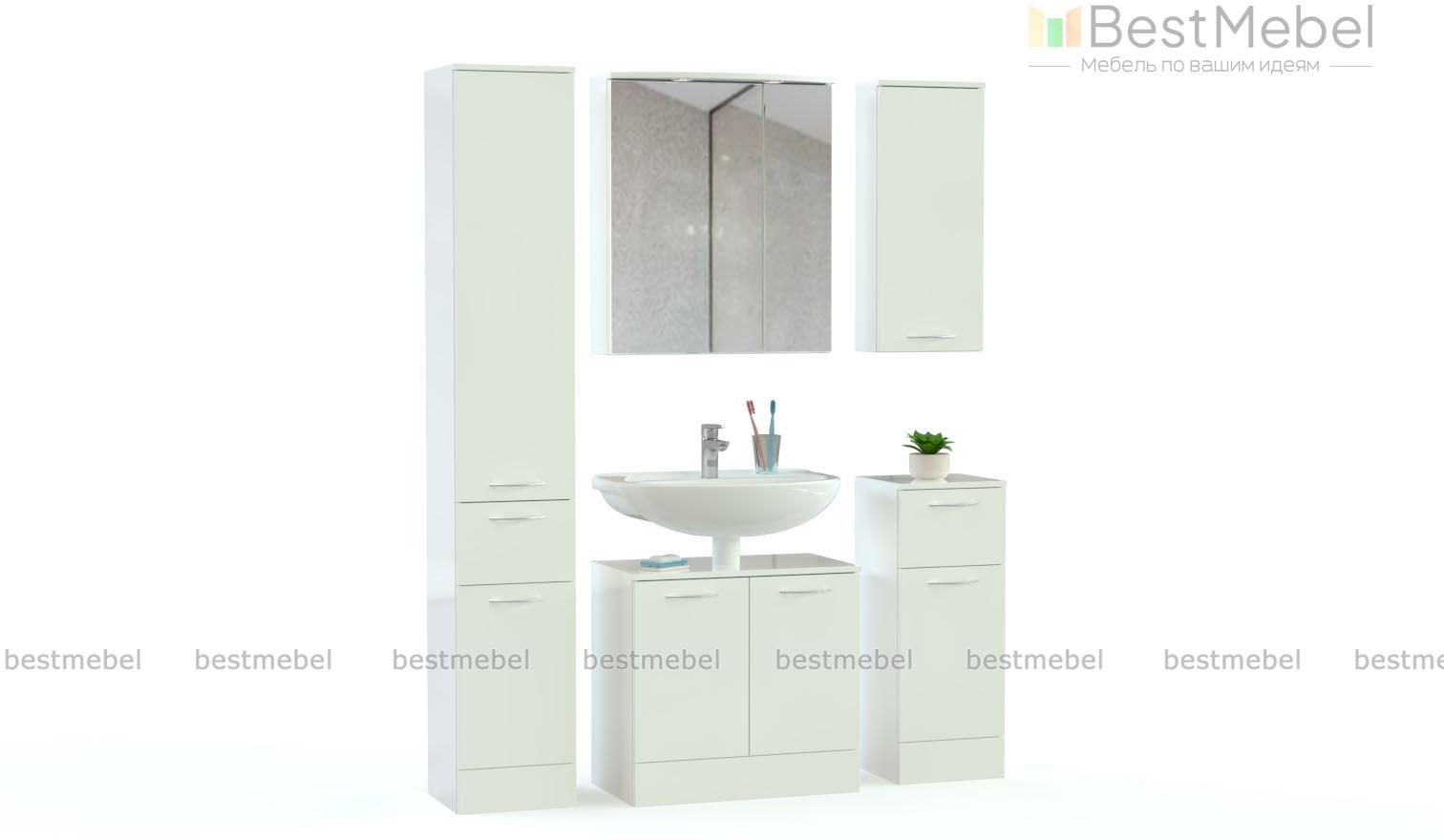 Мебель для ванной Фанни 2 BMS подойдет как для просторных, так и для небольших помещений. Входящие в комплект предметы выполнены во влагостойком глянце и отличаются малой шириной, зрительно вытягивая комнату в высоту. Композиция включает в себя напольную распашную тумбу под раковину и тумбу с выдвижным ящиком, комбинированный пенал, навесной шкафчик и зеркальный шкаф с подсветкой. Купить мебель для ванной Фанни 2 BMS приглашаем в наш интернет-магазин, подобрав цвет и фурнитуру по каталогу.
