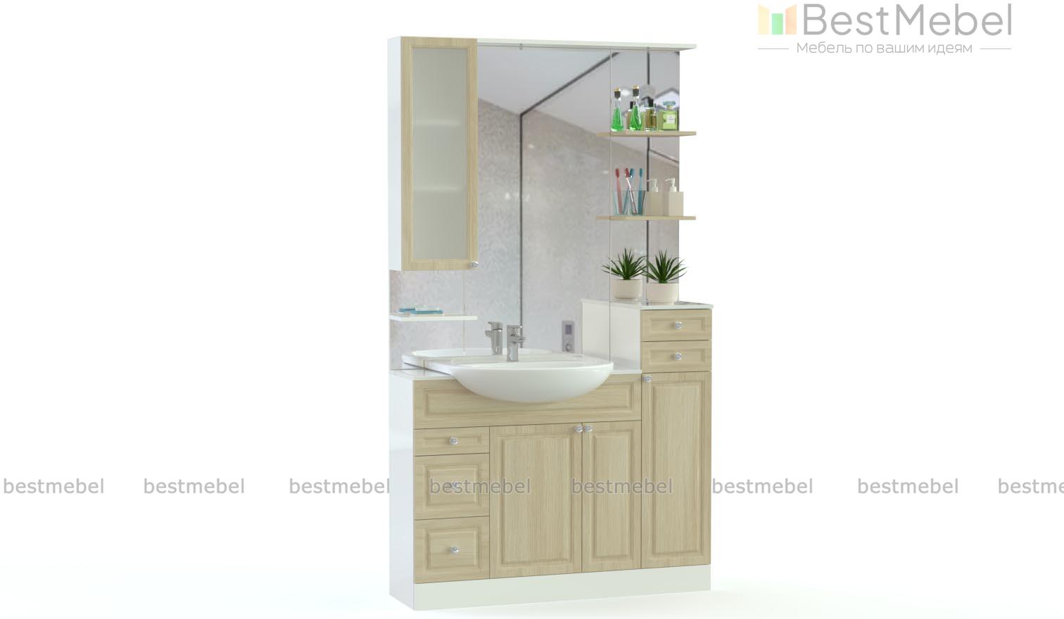 Мебель для ванной Фанни 4 BMS не оставит равнодушными ценителей классики. Элегантная композиция объединила широкую напольную тумбу под раковину, высокую тумбу и большое настенное зеркало, дополненное застекленным шкафчиком, открытыми полками для мелочей и подсветкой. Удобная система хранения включает в себя распашные и выдвижные отделения, рамочные фасады выполнены в теплых коричневых тонах. Купить мебель для ванной Фанни 4 BMS вы сможете в нашем интернет-магазине, подобрав цвет и фурнитуру.