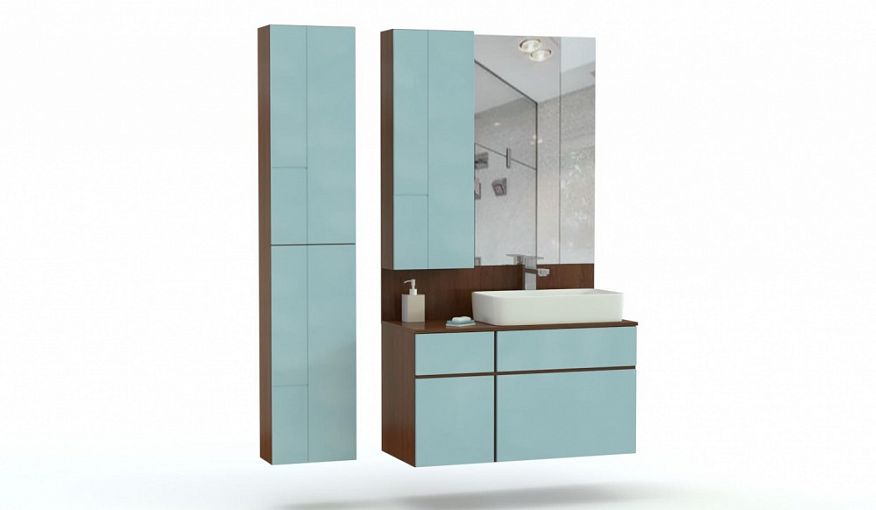 Мебель для ванной Франко 2 BMS отвечает актуальным тенденциям, сочетая минимализм и эргономичность. Подвесная композиция объединила широкую тумбу под накладную раковину с выдвижными ящиками и распашными отделениями, вертикальный шкаф для хранения уходовых средств и большое зеркало. Корпус с имитацией текстуры дерева скомбинирован с нейтрально-голубыми глянцевыми фасадами, декорированными горизонтальной фрезеровкой. Купить мебель для ванной Франко 2 BMS приглашаем к нам в интернет-магазин.
