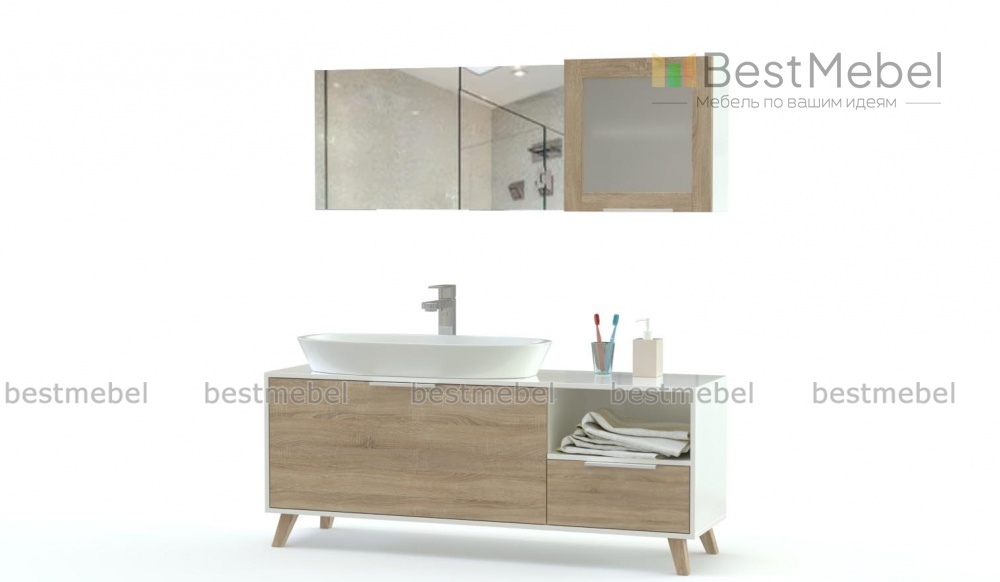 Мебель для ванной комнаты Августин 2 BMS воплощает актуальные тенденции в элегантной композиции. В комплекте тумба под раковину-чашу с широкой столешницей, выдвижными ящиками и нишей, зеркало и застекленный шкаф. Строгие четкие линии предметов подчеркнет древесный оттенок, высокие хромированные ножки подарят мебели легкость и обеспечат устойчивость. Купить мебель для ванной комнаты Августин 2 BMS вы сможете по лучшей цене в нашем интернет-магазине.