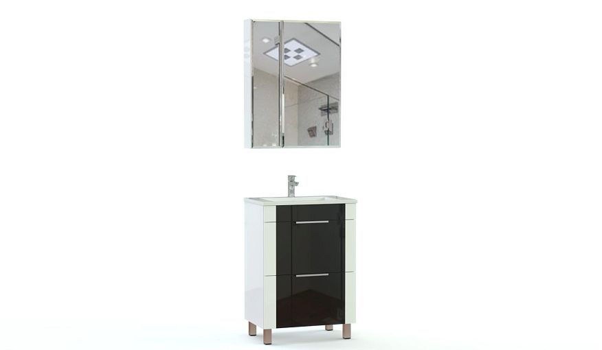 Мебель для ванной комнаты Юго 2 BMS внесет в современный минималистичный интерьер яркий акцент. В комплект входят напольная тумба под раковину, оборудованная двумя глубокими выдвижными ящиками с торцевыми ручками, и навесной зеркальный шкаф с распашным отделением для хранения мелочей. Предметы выполнены из влагостойких материалов в белом цвете, фасад тумбы декорирован черной вставкой. Купить мебель для ванной комнаты Юго 2 BMS приглашаем в наш интернет-магазин.
