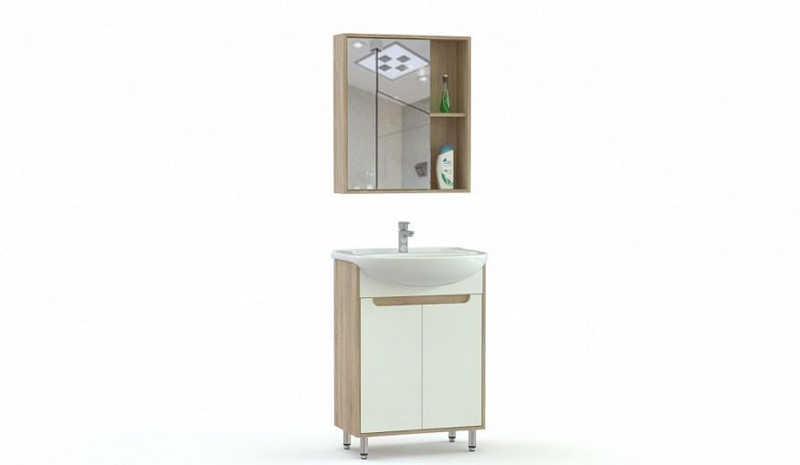 Мебель для ванной комнаты Юго 5 BMS станет универсальным выбором для современных интерьеров благодаря компактным размерам и актуальному сочетанию древесных тонов и белого. В комплект входят напольная распашная тумба под раковину и навесной шкаф, дополненный открытой секцией для хранения мелочей. Высокие регулируемые опоры обеспечат тумбе устойчивость и не дадут скапливаться влаге. Купить мебель для ванной комнаты Юго 5 BMS приглашаем в наш интернет-магазин.