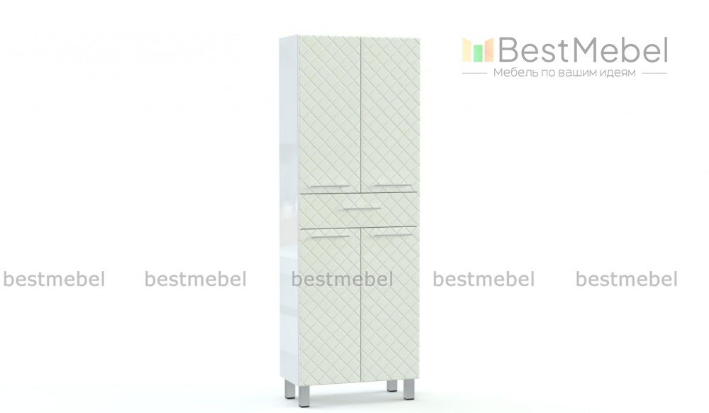 Пенал для ванной комнаты Пола 5 BMS отличается вместительностью и оригинальным современным дизайном. Комбинированная модель оборудована двухдверными распашными отделениями с полками и широким выдвижным ящиком для хранения уходовых средств, текстиля и бытовой химии. Износостойкий белый фасад смотрится особенно эффектно с фрезеровкой ромбами, а устойчивость конструкции обеспечивают высокие опоры. Купить пенал для ванной комнаты Пола 5 BMS приглашаем в наш интернет-магазин.