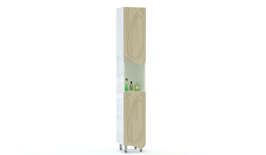 Пенал в ванную комнату Пион 3 BMS сочетает в себе практичность конструкции и оригинальный современный дизайн. Высокая узкая модель с фигурными дверцами выполнена в древесном оттенке и украшена фрезеровкой. Два распашных отделения с полками для хранения гигиенических принадлежностей и бытовой химии разделены просторной нишей, в которой разместятся необходимые в быстром доступе вещи. Купить пенал в ванную комнату Пион 3 BMS вы сможете по выгодной цене в нашем интернет-магазине.