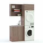 Прачечная Франк 6 BMS отличается компактными размерами, позволяя выделить место под нее даже в городской квартире. Мини-прачечная включает в себя распашную тумбу под мойку, навесную открытую полку для домашнего текстиля или хозяйственных мелочей и высокий шкаф-колонну с нишей под машины для стирки и сушки и верхним шкафчиком с откидной дверцей. Гладкие фасады в древесных тонах просты в уходе и делают интерьер уютнее. Купить прачечную Франк 6 BMS приглашаем недорого в наш интернет-магазин.