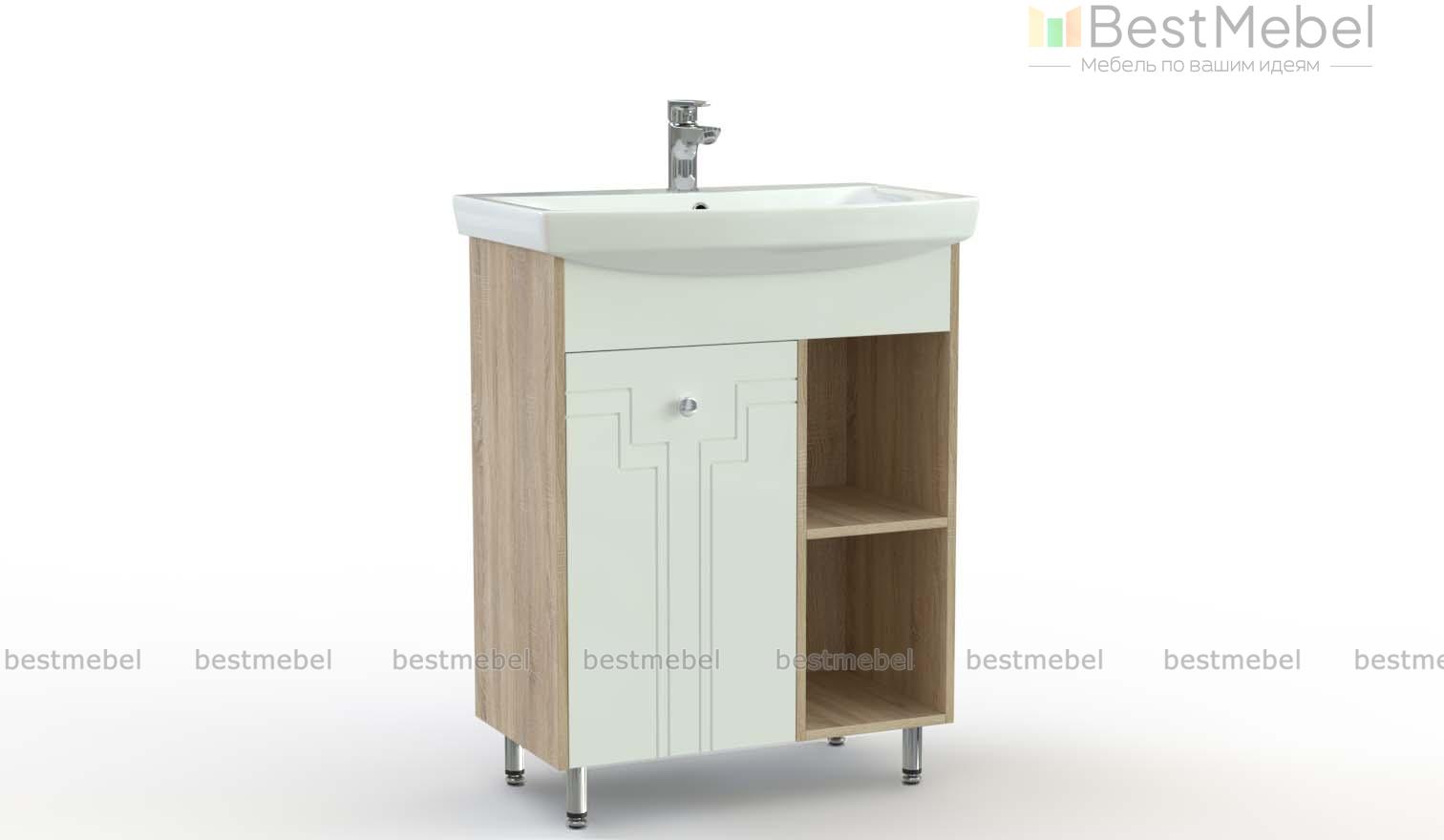 Тумба в ванную Файн 3 BMS – это элегантная современная классика удобных средних габаритов. Пристенная тумба поможет эстетично вписать в интерьер раковину, скрыть коммуникации и разместить гигиенические принадлежности и хозяйственные мелочи в распашном отделении и открытой секции с полкой. Корпус в темном цвете дополняет яркий фрезерованный фасад, выполненный из влагостойкого материала. Купить тумбу в ванную Файн 3 BMS приглашаем на сайт нашего интернет-магазина.