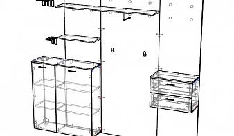 Прихожая с подвесными ящиками и зеркалом Квик BMS