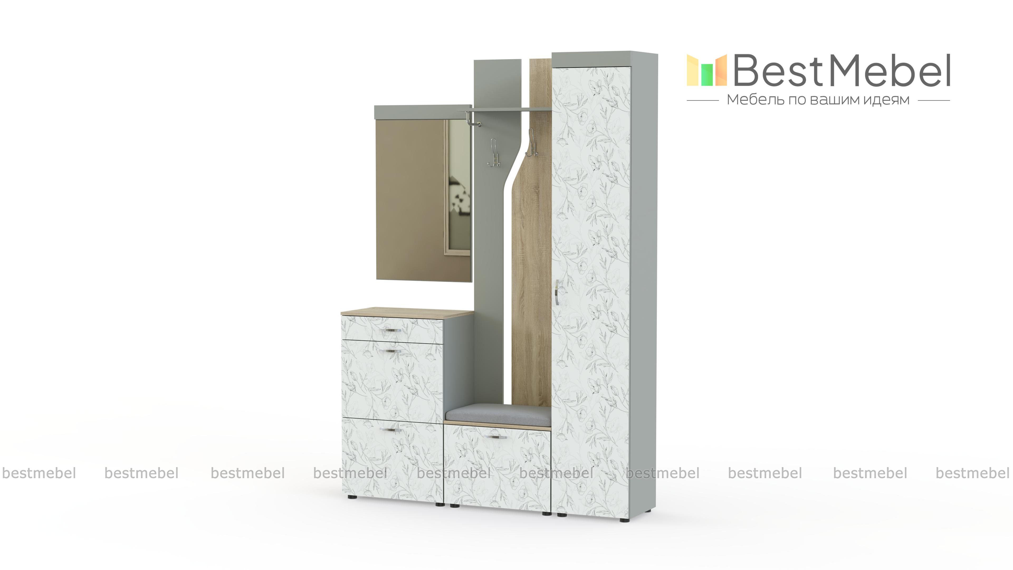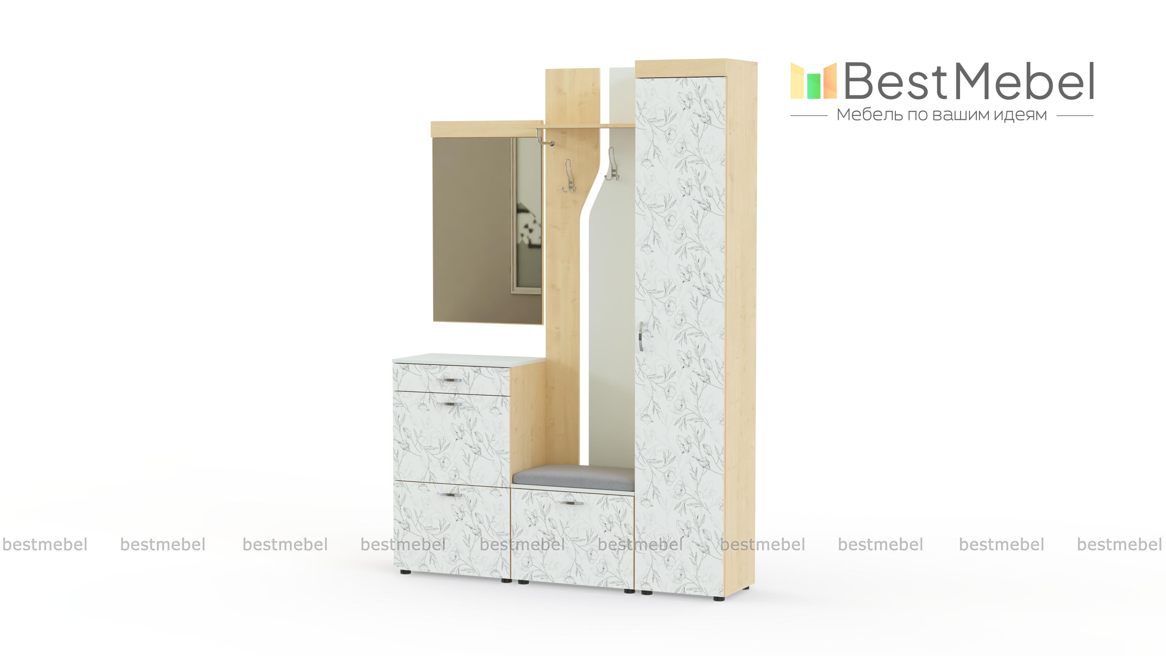Мэри 4 BMS – модульная прихожая, которая станет изящным дополнением уютного классического интерьера. Отдельные элементы вы сможете расположить по своему вкусу, подчеркнув все достоинства планировки. Особенно привлекательный вид модели придает декоративное оформление фасадов горизонтальным орнаментом. В комплекте пенал для одежды с полками, открытая вешалка, обувница с мягким сиденьем в ткани, высокая тумба и зеркало. Купить прихожую Мэри 4 BMS по лучшей цене приглашаем в наш интернет-магазин.