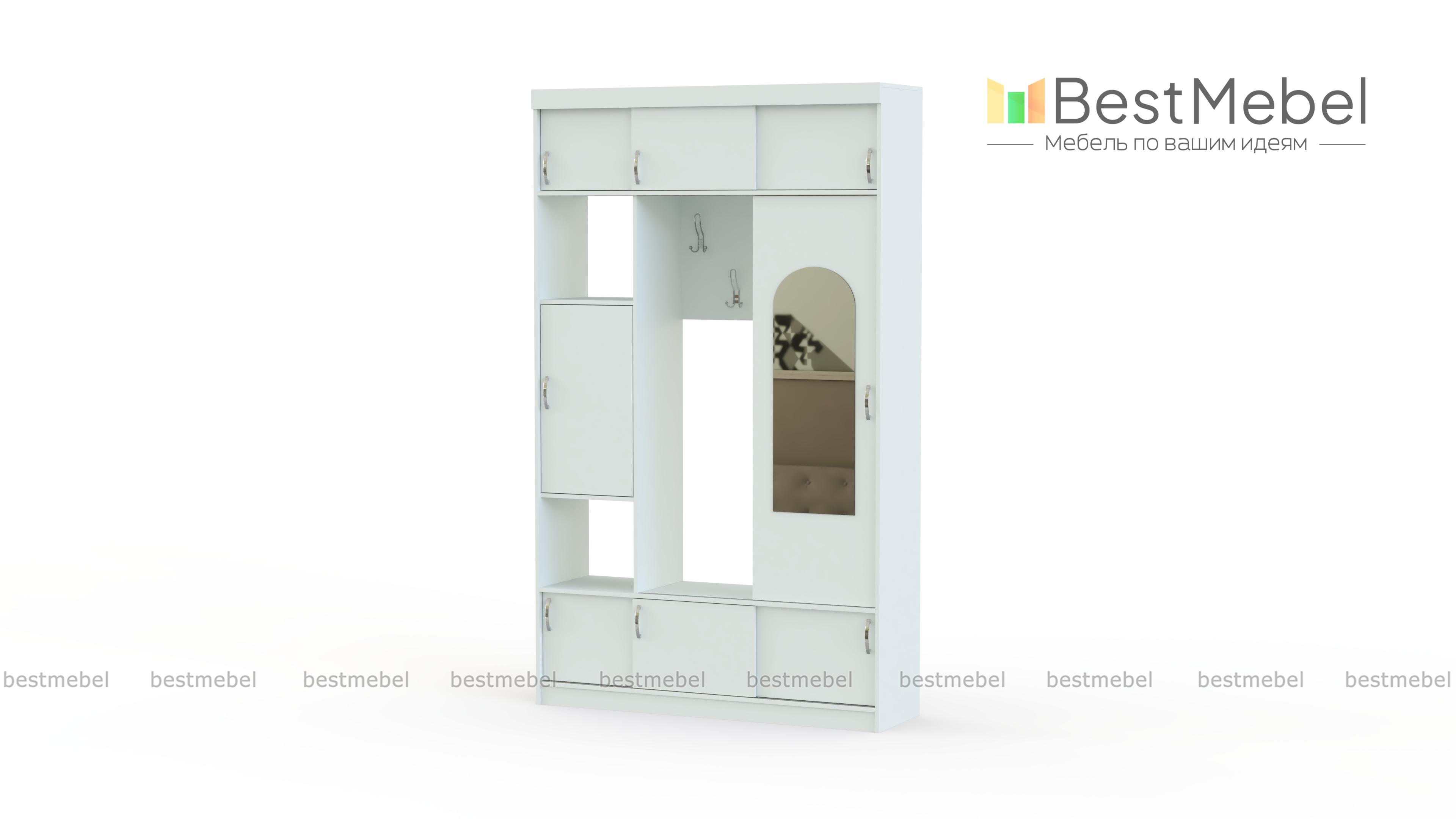Прихожая №3 – это очень компактная модель, которую можно установить в прихожую небольших размеров. Несмотря на свои габариты, она очень вместительная – помимо открытой вешалки для верхней одежды и закрытого шкафа, есть нижние и верхние антресоли для хранения головных уборов и других вещей. Расположение элементов в конструкции обеспечивает удобный доступ к каждому предмету гардероба. Наш интернет-магазин дает Вам возможность выбрать другой цвет модели и заказать её по выгодной цене.
