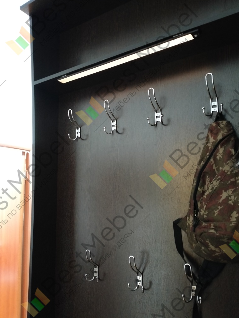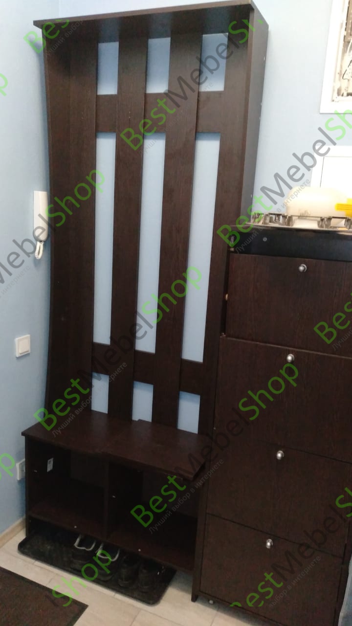 Заказали в компании BestMebel прихожую N00000856915 по индивидуальным размерам. У нас уже были шкафы и входная дверь цвета венге. Поэтому решили дополнить коридор прихожей цвета венге так, чтобы размеры соответствовали уже имеющимся шкафам, чтобы получилось состыковать. Ещё сделали мягкое сиденье нужного нам цвета. И вышло просто отлично! На фото видно, что прихожая от БестМебель идеально присоединилась к нашему шкафу. Эскиз по нашим размерам выполнили очень быстро, все согласования проходили по электронной почте, либо звонил менеджер из Москвы. Доставили день в день, как обещали, даже раньше на несколько часов, но это лучше, чем задержка.Мы присоединили к верхней части аюприхожец светильник на магнитах, что дополнительно создаёт уют.