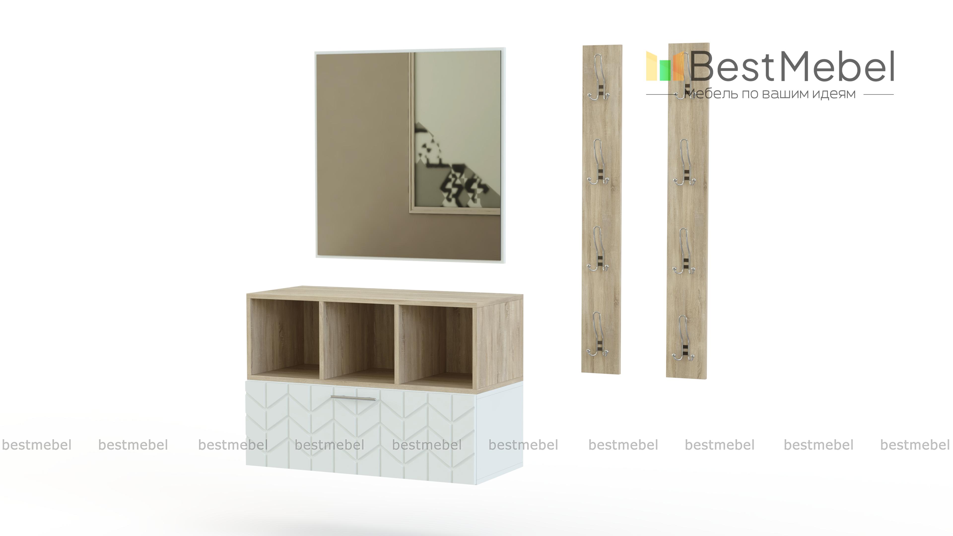 Прихожая Шерон 13 BMS будет эффектно смотреться в современном минималистичном интерьере. Геометричная навесная композиция включает в себя узкие панели с крючками для одежды и аксессуаров, большое зеркало без рамы и комбинированную тумбу для хранения обуви и уходовых средств с тремя открытыми секциями и глухим отделением. Древесные оттенки скомбинированы с нейтрально-серым, подчеркивая строгие четкие линии. Купить прихожую Шерон 13 BMS приглашаем на сайт нашего интернет-магазина.