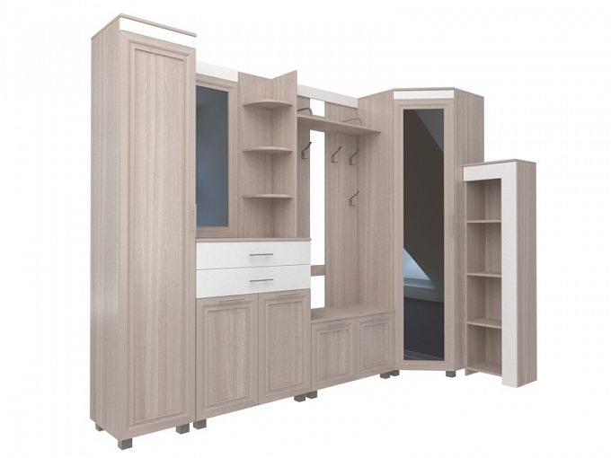 Прихожая Йорк BMS – это несколько изящных модулей, объединенных в единую стильную композицию. Универсальный угловой комплект легко вписать и в классический, и в современный интерьер, подчеркнув все его достоинства. Разместить предметы гардероба и аксессуары будет легко с многочисленными распашными отделениями, выдвижными ящиками и открытыми полками. Фасады светлых тонов, имитирующие текстуру натурального дерева, эффектно сочетаются с глянцевыми и зеркальными поверхностями. Купить прихожую Йорк BMS по лучшей цене вы сможете в нашем интернет-магазине.