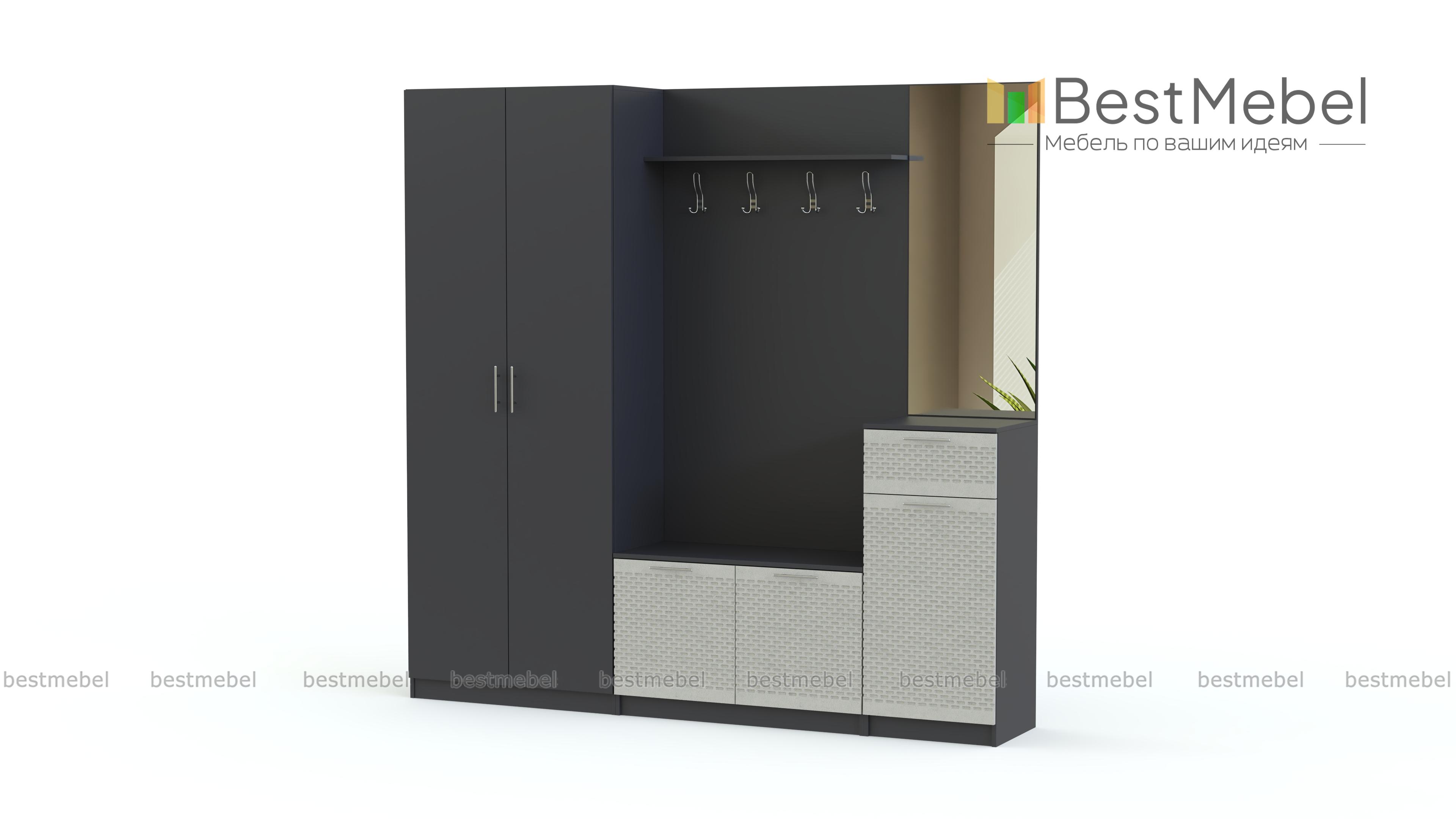 Стенка прихожая «Футурино 7» BMS – элегантное дополнение классического интерьера. В комплект входят открытая панель с вешалками и низкой тумбой, высокая тумба с зеркалом и двухстворчатый платяной шкаф. Практичная конструкция позволит вписать стенку даже в небольшие помещения. Особенную привлекательность модели придают яркие рельефные фасады тумб с эргономичными ручками. Купить стенку прихожую «Футурино 7» BMS вы сможете недорого в нашем интернет-магазине.