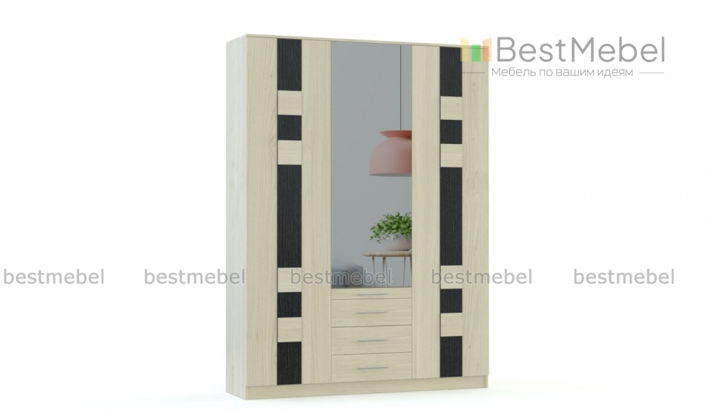 Распашной шкаф Николь М BMS выполнен в древесных тонах контрастной гамме и украшен геометричным декором. Трехдверная модель украсит интерьер спальни или прихожей и компактно разместит предметы гардероба и постельные принадлежности. Шкаф оборудован платяным отделением со штангой и бельевыми полками, удобная для примерок зеркальная створка выполняет не только декоративную, но и практическую функцию. Купить распашной шкаф Николь М BMS по доступной цене вы сможете в нашем интернет-магазине.