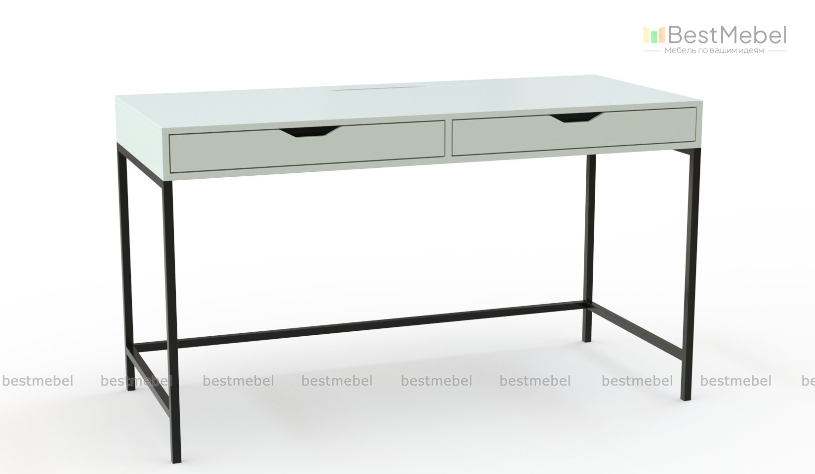 Стол письменный Алекс Alex 1 располагается на металлическом каркасе, визуально легком и прочном. Модель с широкой столешницей оборудована двумя выдвижными ящиками, оснащенными вырезными ручками, для хранения бумаг и канцелярских мелочей. Благодаря специальному вырезу на столешнице провода будут скрыты, и рабочее место примет аккуратный вид. Купить стол письменный Алекс Alex 1 и оборудовать комфортное рабочее пространство вам поможет наш интернет-магазин. Выбирайте мебель в стиле IKEA (ИКЕА) от производителя BestMebelShop!