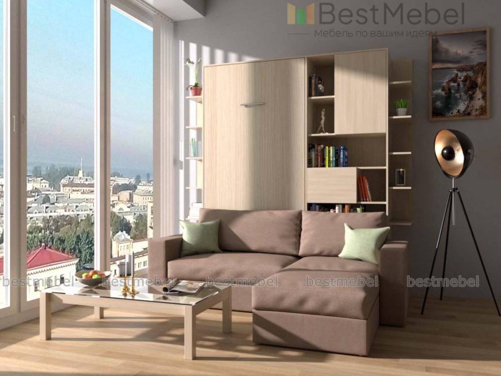 Шкаф-кровать с диваном Диалог BMS – простой и эффективный способ решить проблему нехватки полезной площади. Многофункциональная композиция объединила вместительную стенку с глухими и открытыми полками, компактный угловой диван и модуль-трансформер. Вы сможете разместить большое количество бытовых мелочей, а при необходимости получить полноценное спальное место. Исполнение в нейтральных древесных тонах делает модель универсальной. Купить шкаф-кровать с диваном Диалог BMS для небольшой квартиры или студии приглашаем в наш интернет-магазин.