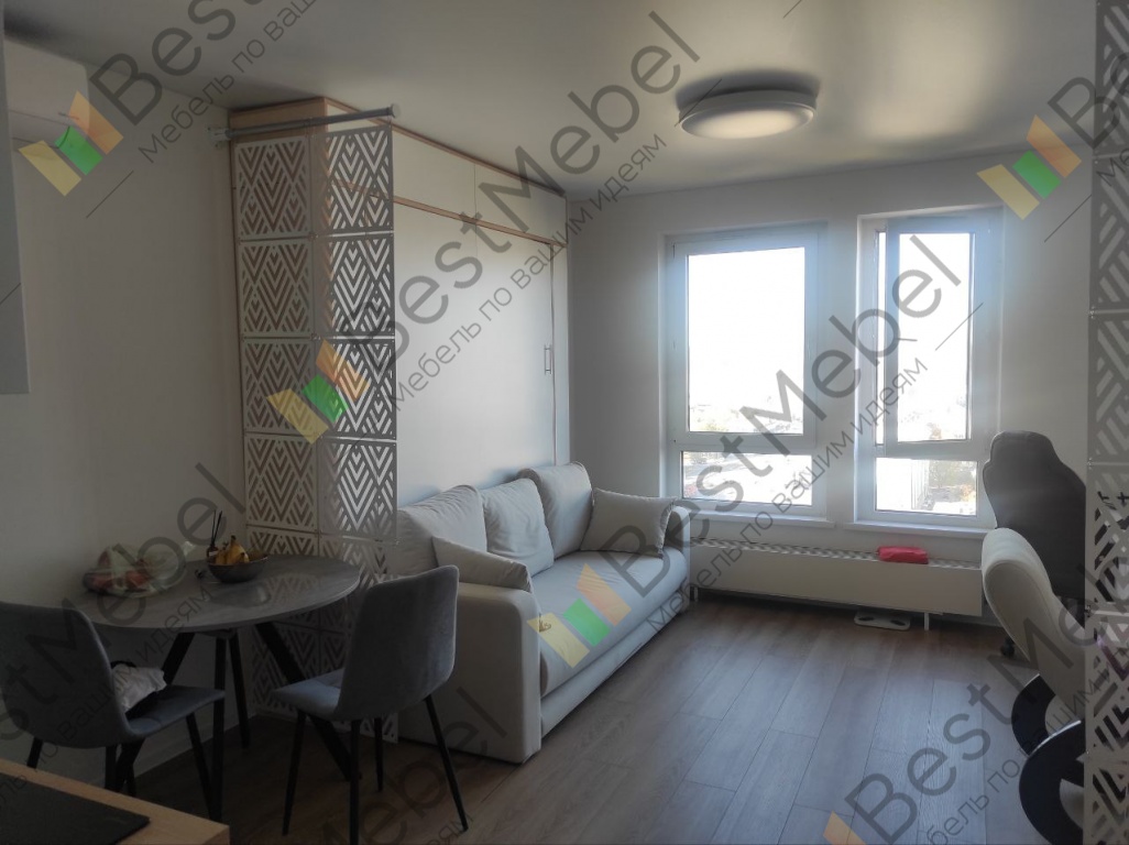 Шкаф-кровать Кремона BMS станет выбором тех, кто ценит минимализм и функциональность. Эффектная кремовая композиция объединила шкаф с откидной кроватью-трансформером и комфортный двухместный диван с широкими подлокотниками и съемными подушками спинки. Боковые фальшпанели дополнены открытыми полками, на которых удобно разместятся необходимые под рукой мелочи, а особенно уютным сделает интерьер встроенная в нишу подсветка. Купить шкаф-кровать Кремона BMS с учетом нужных параметров приглашаем к нам в интернет-магазин.