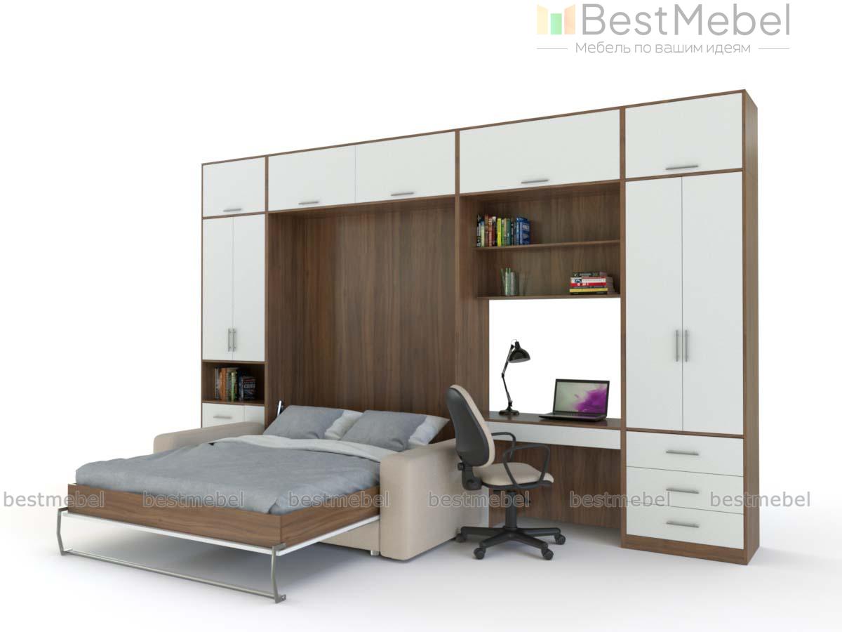 Шкаф-кровать Мирона BMS – это многофункциональная композиция в скандинавском стиле, объединившая все необходимое современной квартире-студии. Модульная стенка оборудована продуманной до мелочей системой хранения, рабочим местом, комфортным двухместным диваном с широкими подлокотниками и съемными приспинными подушками, а также встроенной откидной кроватью. Надежность конструкции и износостойкие материалы станут гарантией долговечности и эстетичного вида. Купить шкаф-кровать Мирона BMS по выгодной цене приглашаем к нам в интернет-магазин.